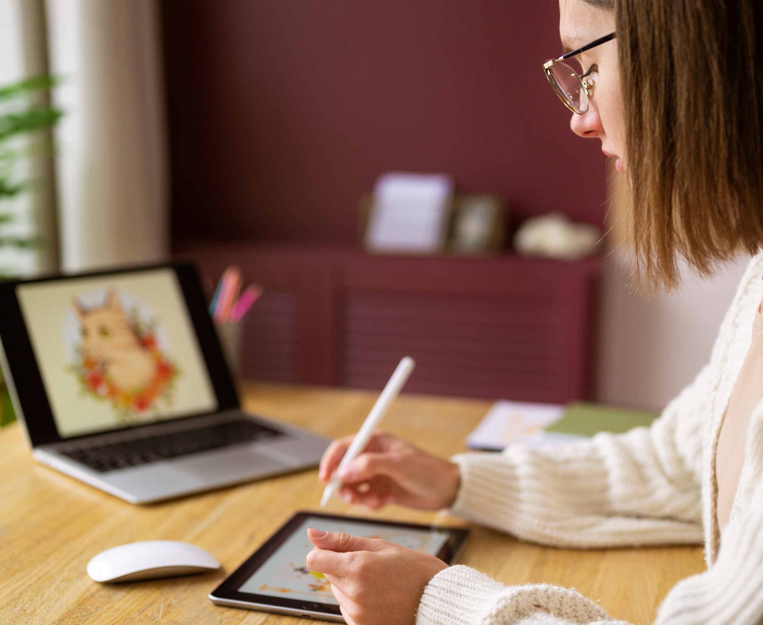 Séance individuelle de 30 min à 1h, adaptée à vos besoins : bases académiques ou créatives (nature morte, perspective, portrait, anatomie, composition graphique, digital).